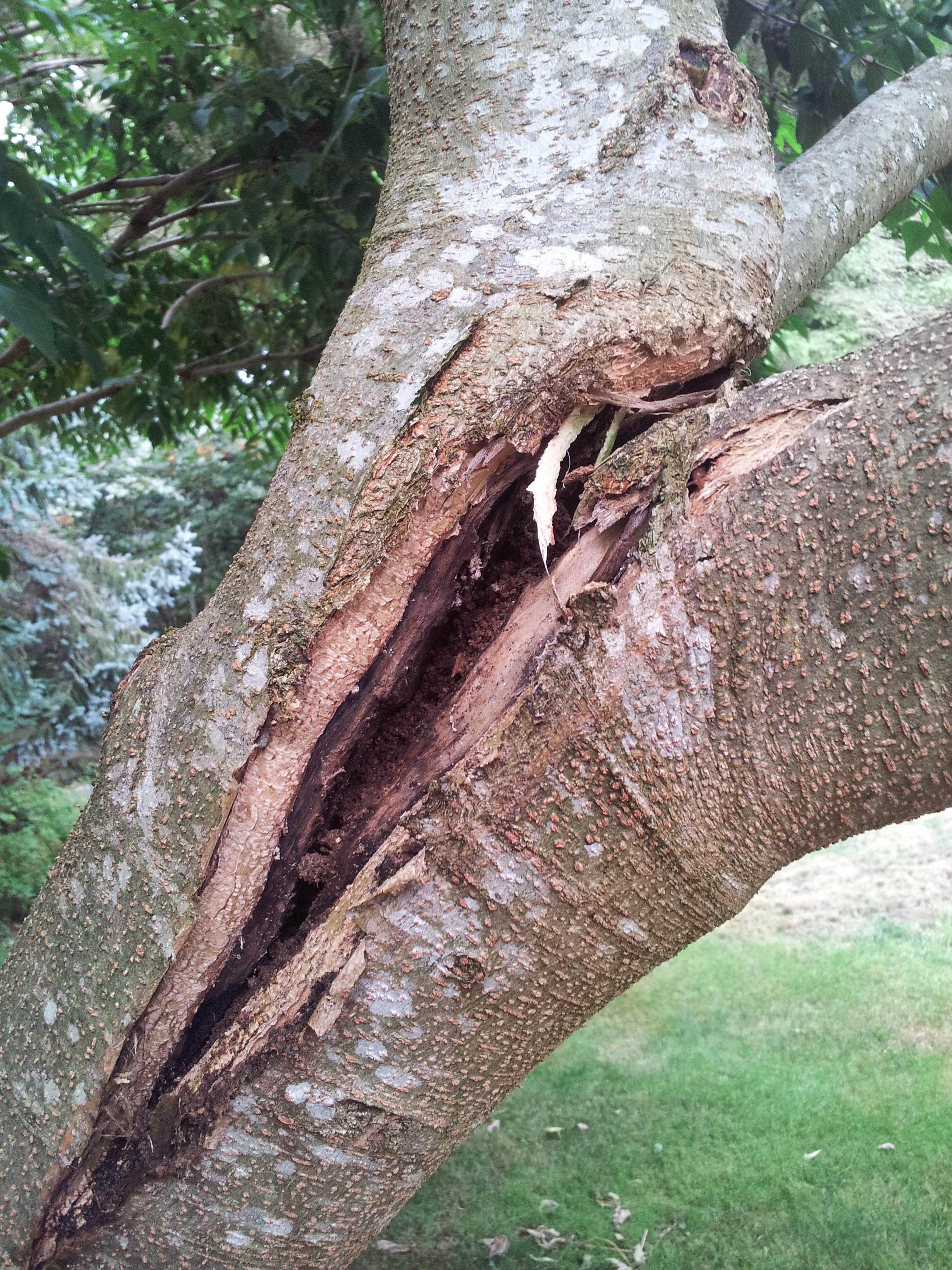 So last year Hubby and my youngest son got the chainsaw out and took the heaviest part off. It’s something he’s been wanting to do for a long time and I fought him on it. When my mom suggested that it was probably the best thing to do for the tree, five minutes after she left and I was down the street walking the dog the chainsaw roared and the tree was in half.