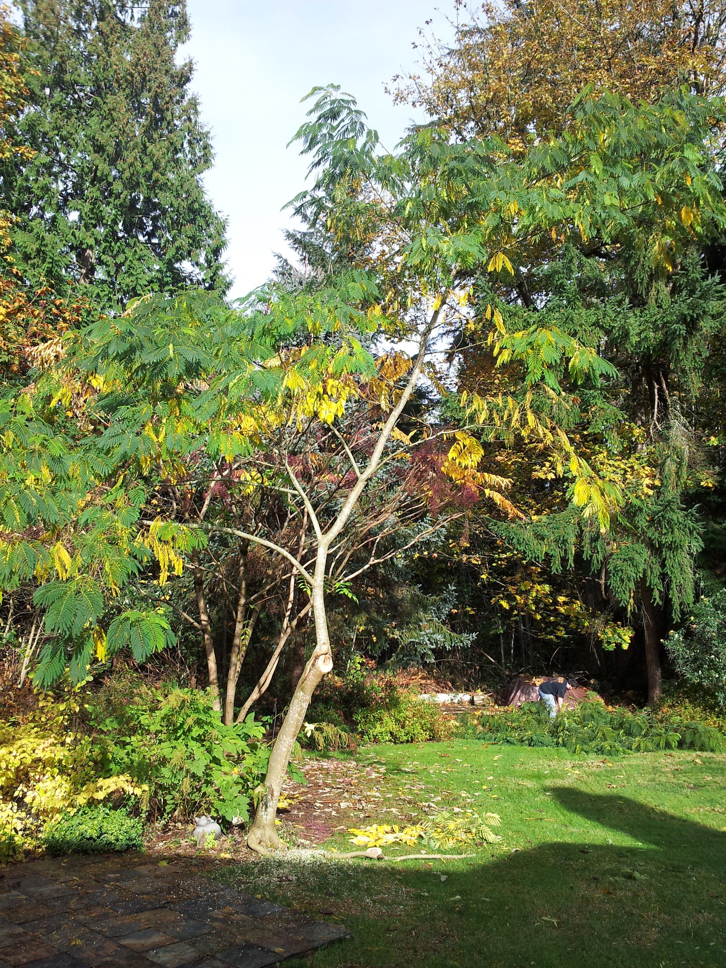 So today the Silk Tree comes down and so does a Blue Spruce that is not doing well. That will open up a part of the yard that has been in deep shade for a long time, so I will have more options for plants and also for making that particular garden smaller. This is part of why I didn’t sleep well last night. You know how pruning goes. Starting is not so hard. It’s the stopping that’s the… well you know. 😉 And now that I have help there are lot of projects that I’ve been wanting to do that involves cutting things down and rearranging. (Just need too tell hubby. (he he he) We also need to hit a better bigger nursery and pick up some more plants. Planning all that out kept me up all night. Going to be a long but hopefully productive day.